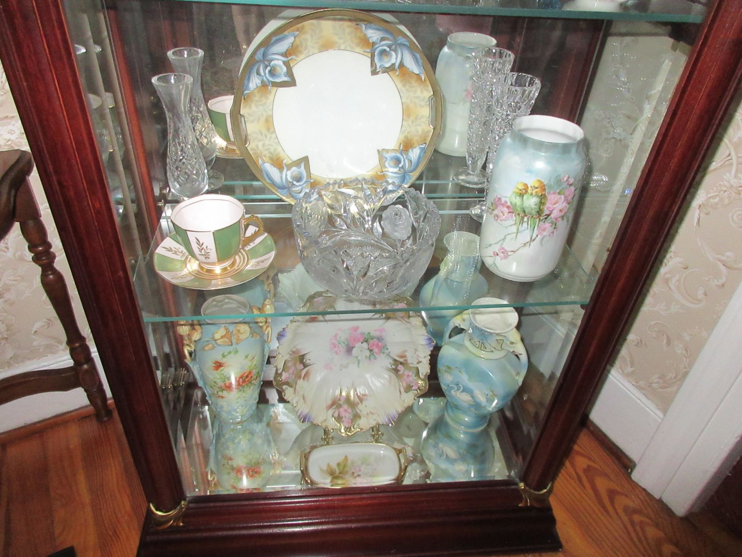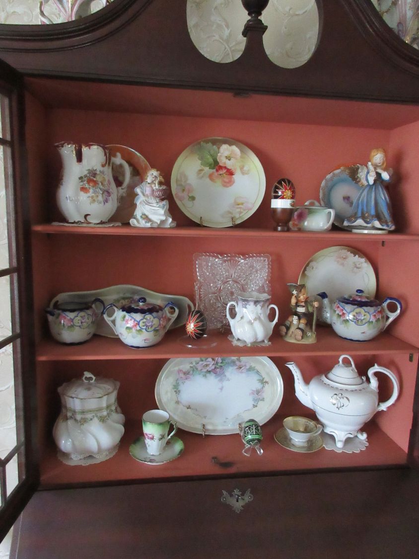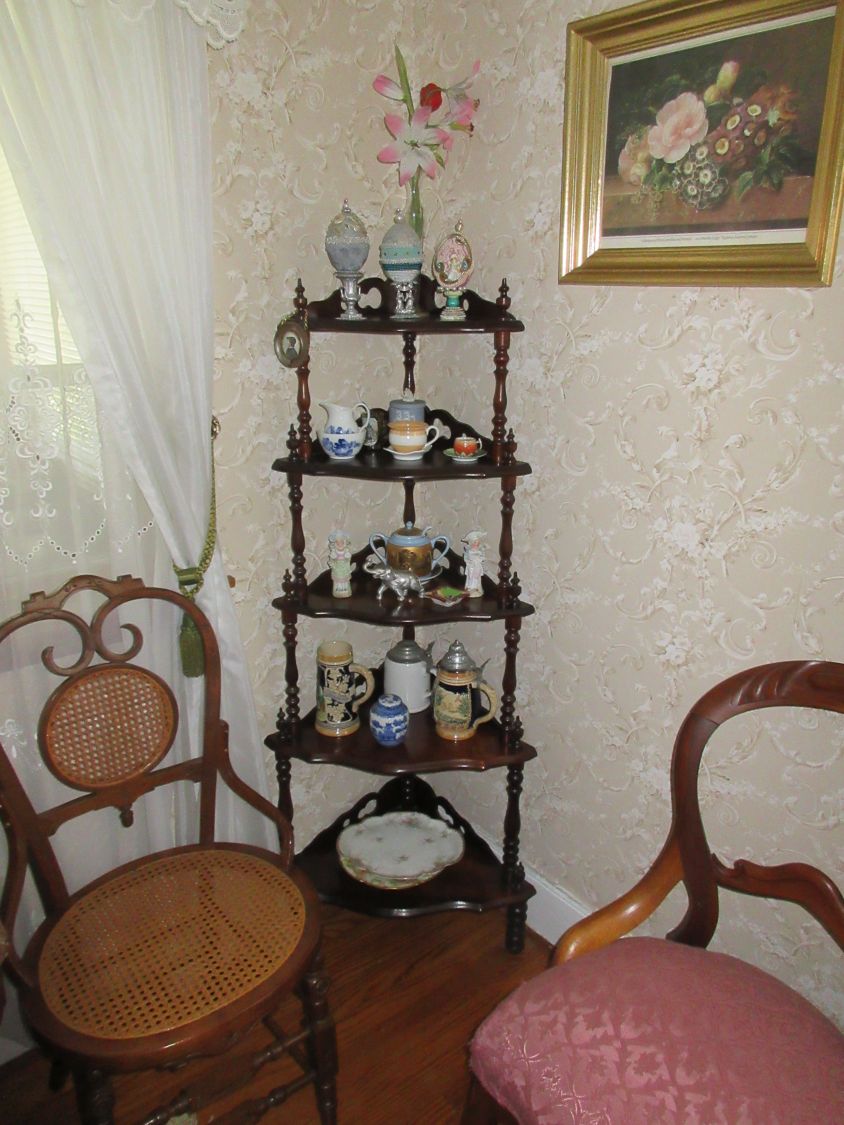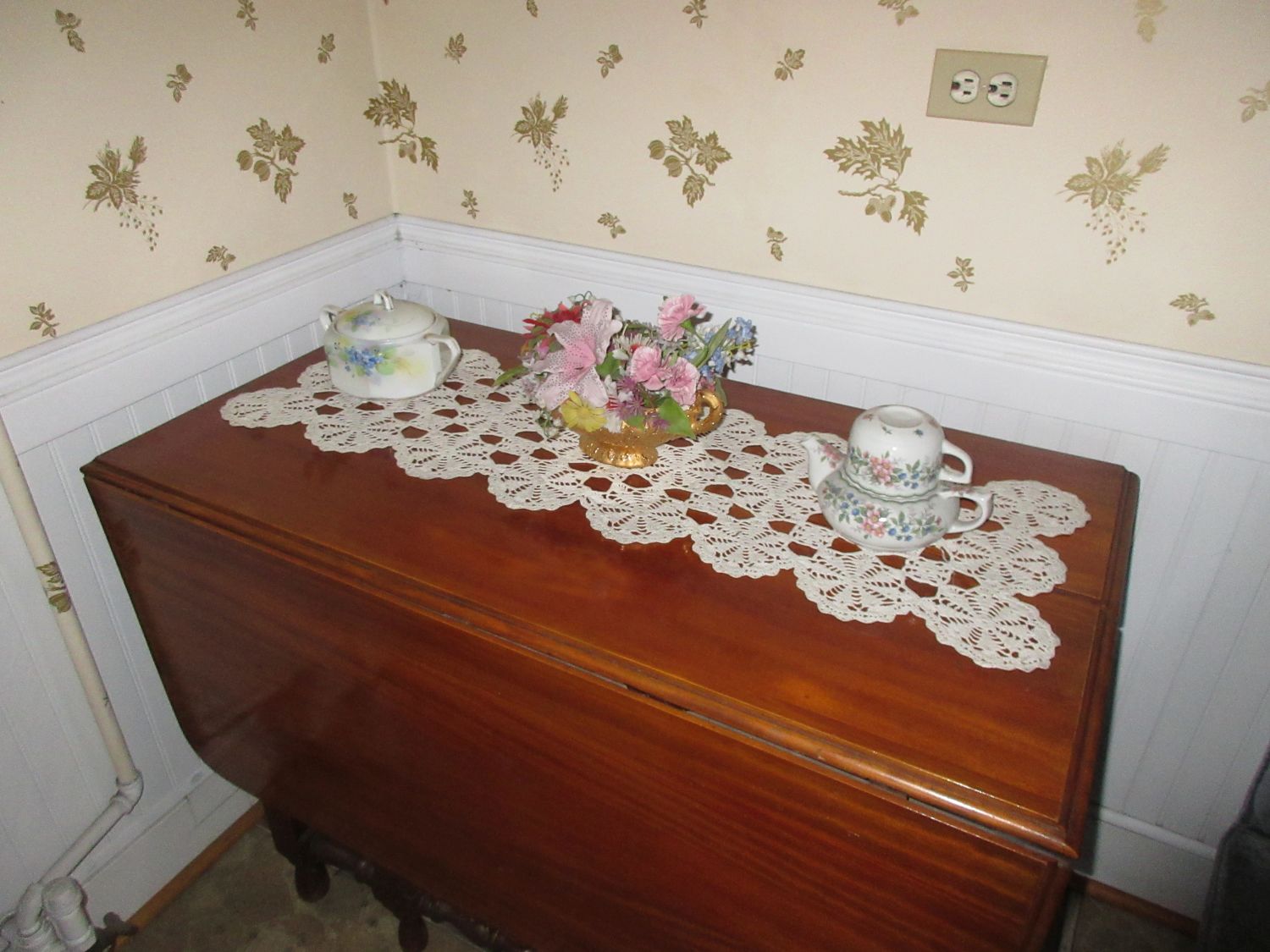 ANTIQUES AND COLLECTIBLES: Elmira Stove Works Antique Style Cook Stove; Mission Oak Desk; Oak Drop Leaf Table; Oak Commode; Walnut MT Commode; Victorian Settee; Victorian MT Parlor Tables; MT Stand; Oak File Cabinet; Treadle Sewing Machine; Rockers; Victorian Chairs; Floral Umbrella Stand; Antique Floor and Table Lamps; RS Prussia Coffee Set; Haviland China; Glassware and China; Woodenware; Vintage Tins; Childs Tea Set; “Old Man Shoemaker” Wind Up Toy; Bottles; Hummels; Bookends; Oil Lamps; Corner What-Not-Shelf; Antique Wall Mirrors; Oriental Rugs; Trunks; High Chair; Wooden Antique Box; Wooden Cabbage Shredder; Hat Pins; Comb & Mirror Set; Letter Opener; Antique Floral Lamp Shade; Vases; Religious Collectibles; Vintage Advertising Tins & Spice Tins; Vintage Bread Maker & Toaster; Vintage Tea Kettles; Cast Iron Irons; Boot Jack; Oil Lamp Bracket