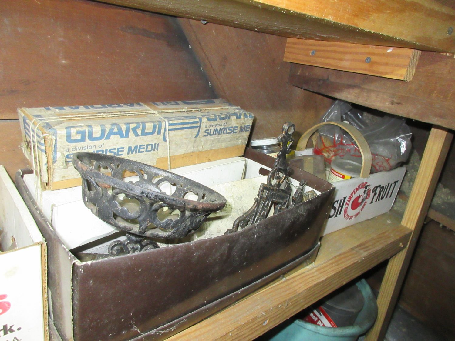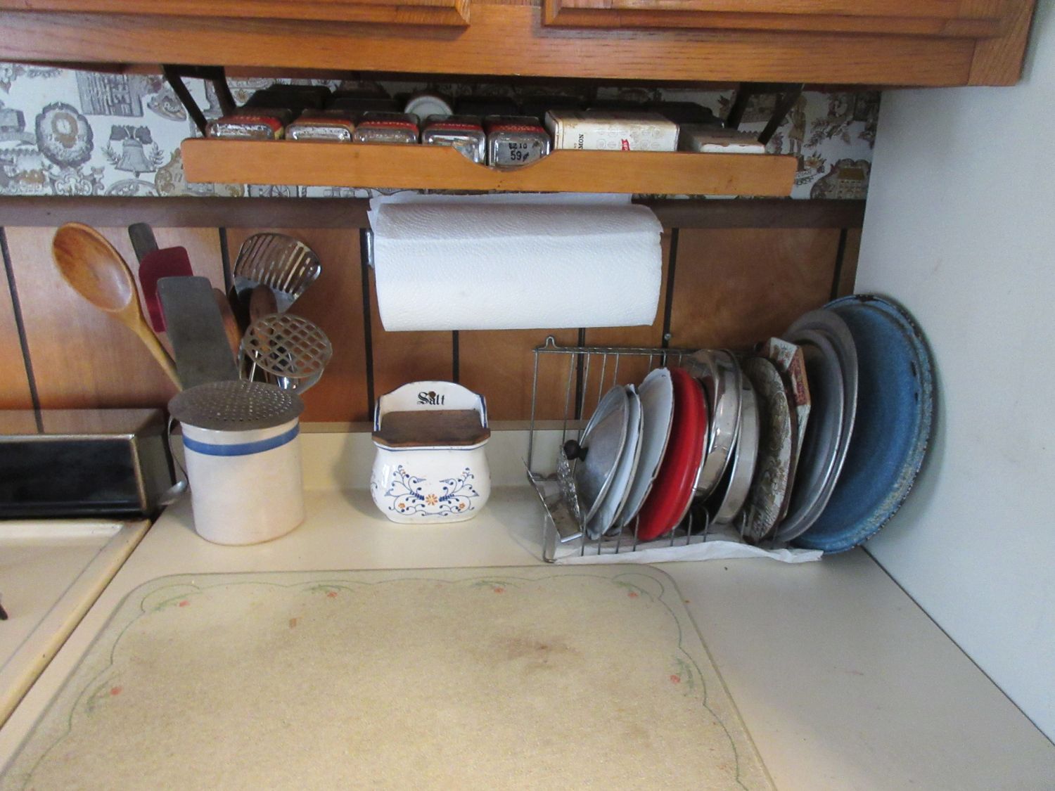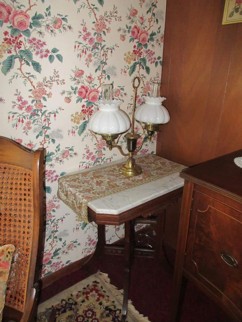 ANTIQUES AND COLLECTIBLES: Elmira Stove Works Antique Style Cook Stove; Mission Oak Desk; Oak Drop Leaf Table; Oak Commode; Walnut MT Commode; Victorian Settee; Victorian MT Parlor Tables; MT Stand; Oak File Cabinet; Treadle Sewing Machine; Rockers; Victorian Chairs; Floral Umbrella Stand; Antique Floor and Table Lamps; RS Prussia Coffee Set; Haviland China; Glassware and China; Woodenware; Vintage Tins; Childs Tea Set; “Old Man Shoemaker” Wind Up Toy; Bottles; Hummels; Bookends; Oil Lamps; Corner What-Not-Shelf; Antique Wall Mirrors; Oriental Rugs; Trunks; High Chair; Wooden Antique Box; Wooden Cabbage Shredder; Hat Pins; Comb & Mirror Set; Letter Opener; Antique Floral Lamp Shade; Vases; Religious Collectibles; Vintage Advertising Tins & Spice Tins; Vintage Bread Maker & Toaster; Vintage Tea Kettles; Cast Iron Irons; Boot Jack; Oil Lamp Bracket