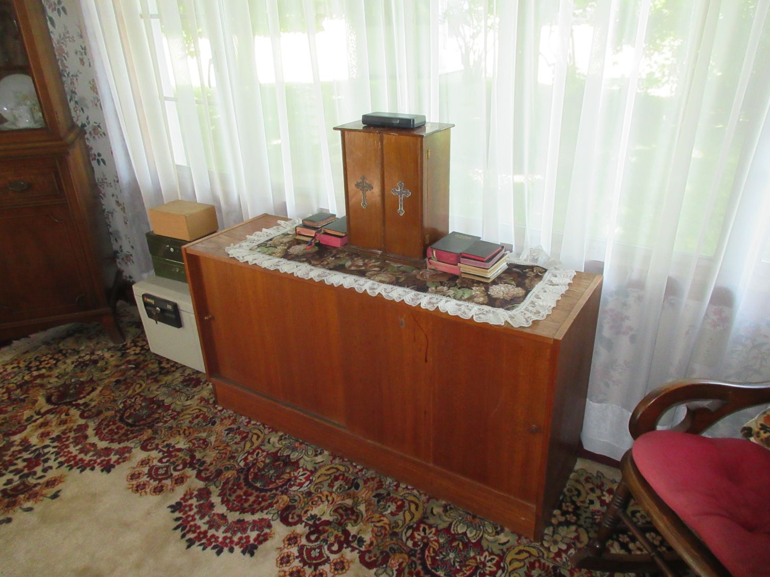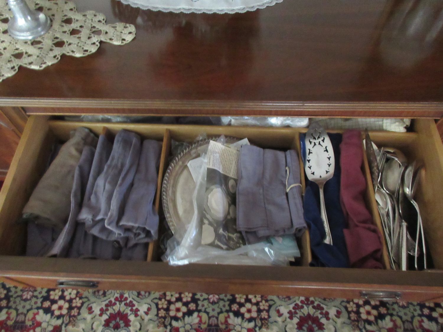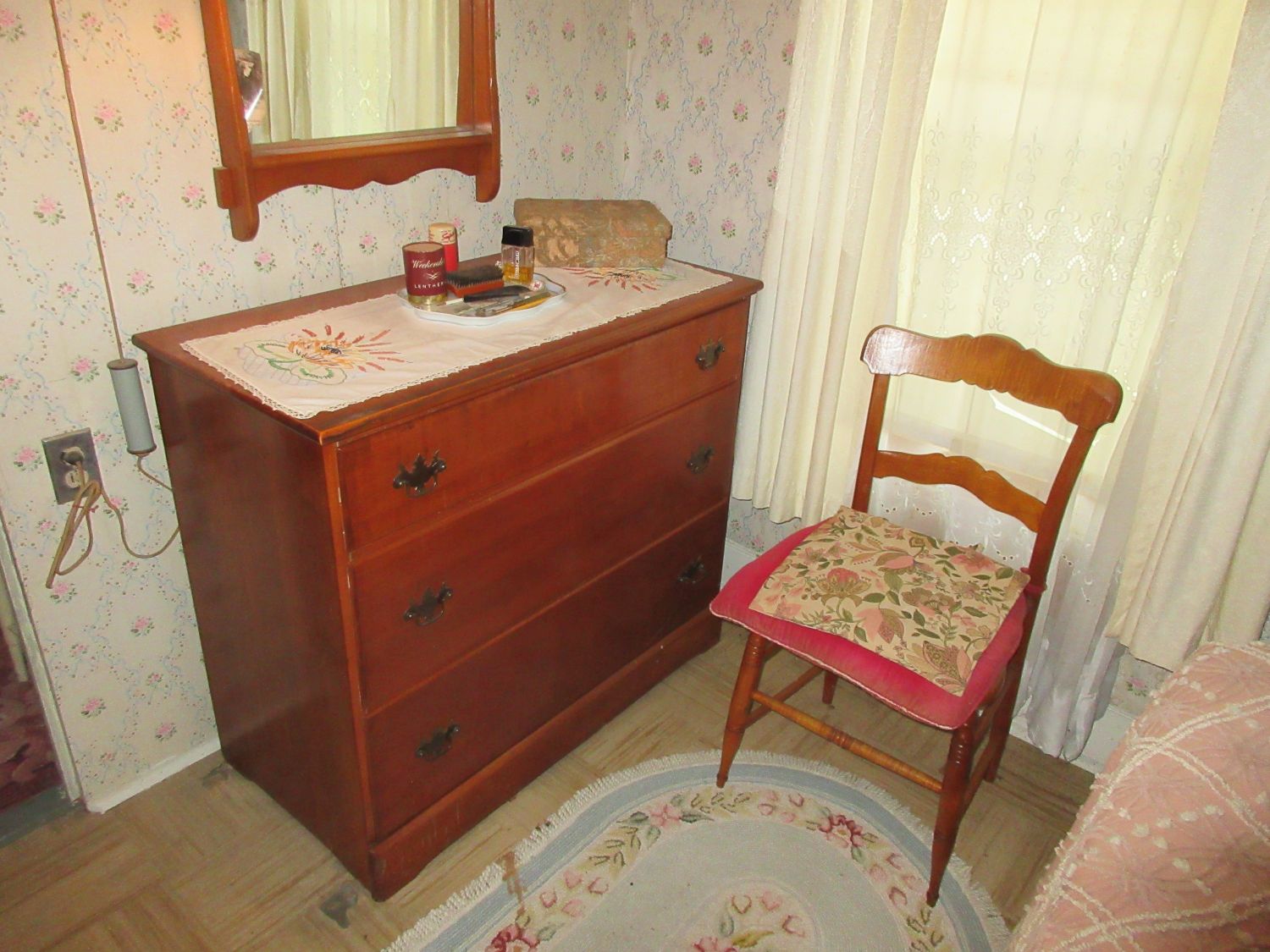 HOUSEHOLD: Dining Room Set (Table, 6 Chairs, Hutch/Buffet); Curio Cabinet; China Cabinet; Claw Footed 4 Drawer Secretary; Drop Leaf Gate Leg Table; Prism Chandelier; Pedestal Round Stand; Hutch; Bookcase; Loveseat; Recliner; Upholstered Chair; Tall Kitchen Cabinet/Closet; Hall Trees; Lamps; Stands; Single Bed; Dressers; Double Bed; Cedar Chests; Trunk; Maple Dresser; Full Size Bed; (2) Samsung TV’s; Magnavox DVD/VHS Player w/ Stand; File Cabinets; Vacuum Cleaner; Microwave; Kitchenware; Framed Pictures; Sentry Safe ; Portable Sewing Machine; Linens; Blankets; Christmas Décor; Figurines; Canning Kettles; Aluminum Folding Table; 8 Gallon Crock; Porch Swing