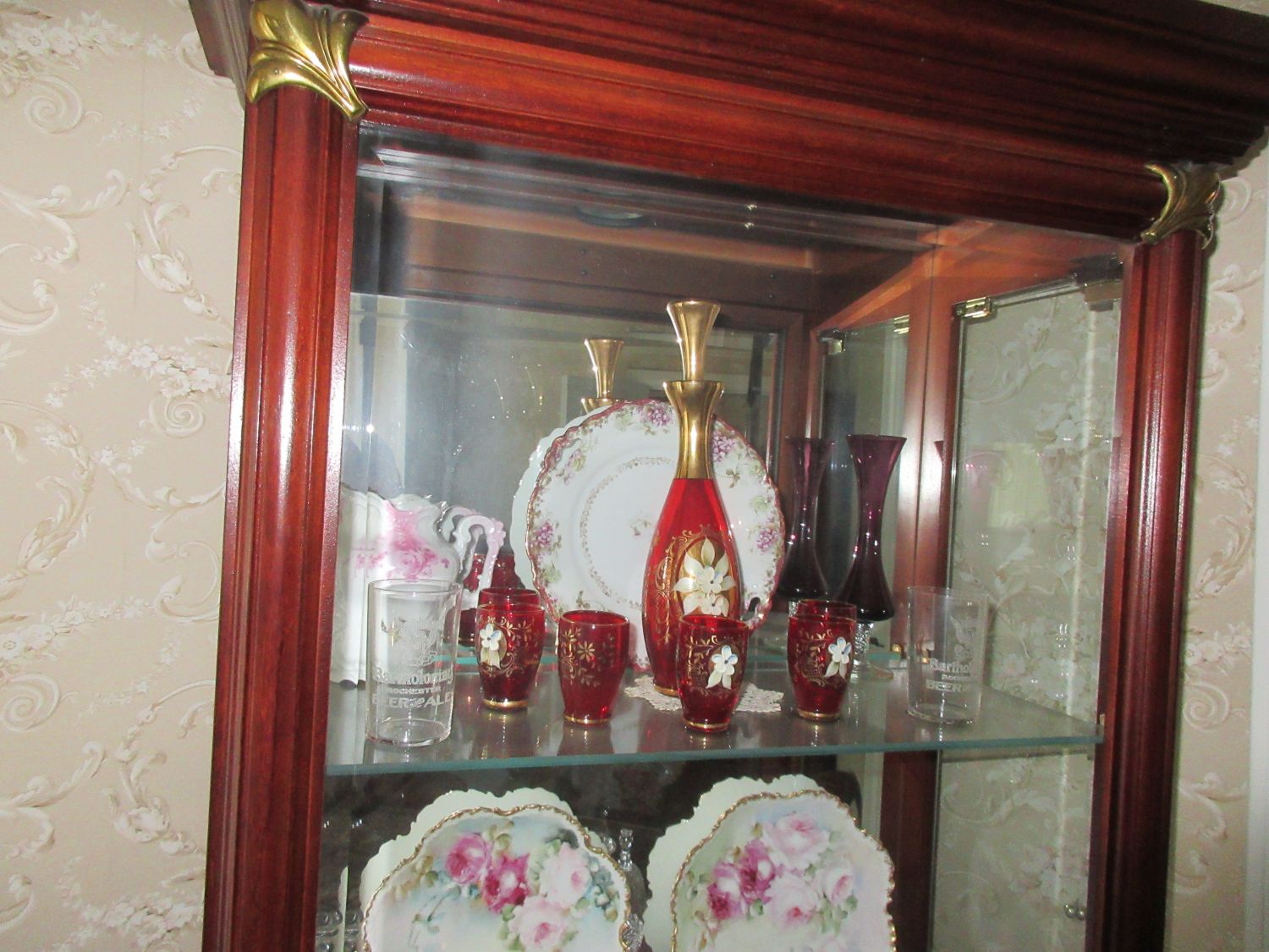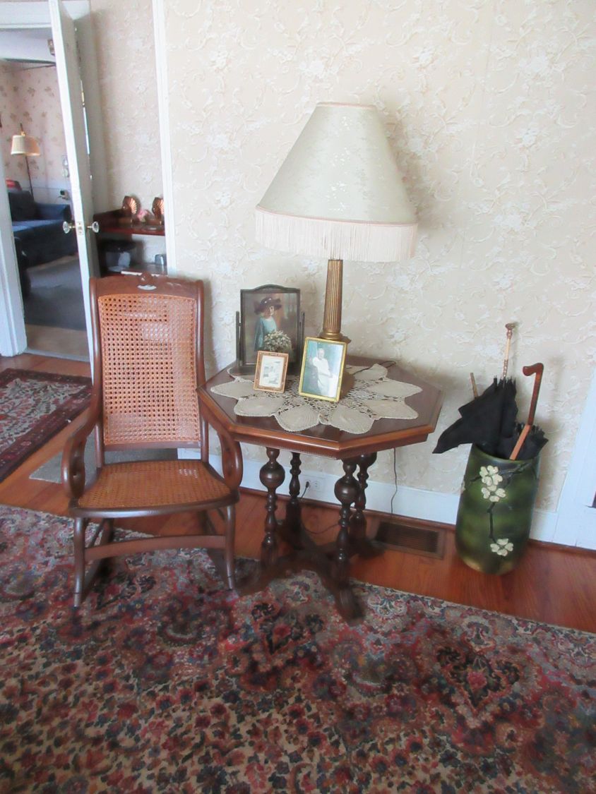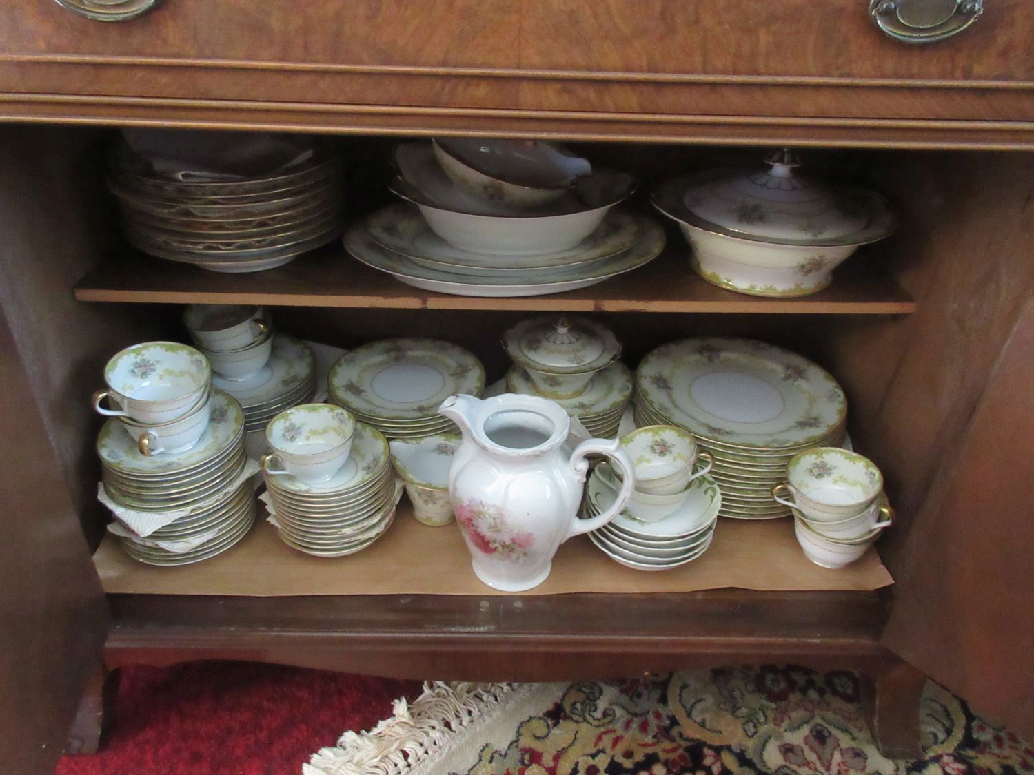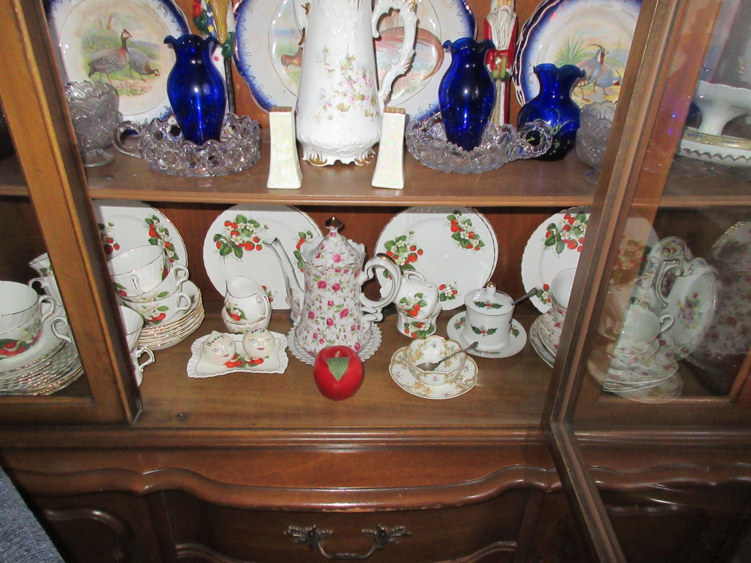 HOUSEHOLD: Dining Room Set (Table, 6 Chairs, Hutch/Buffet); Curio Cabinet; China Cabinet; Claw Footed 4 Drawer Secretary; Drop Leaf Gate Leg Table; Prism Chandelier; Pedestal Round Stand; Hutch; Bookcase; Loveseat; Recliner; Upholstered Chair; Tall Kitchen Cabinet/Closet; Hall Trees; Lamps; Stands; Single Bed; Dressers; Double Bed; Cedar Chests; Trunk; Maple Dresser; Full Size Bed; (2) Samsung TV’s; Magnavox DVD/VHS Player w/ Stand; File Cabinets; Vacuum Cleaner; Microwave; Kitchenware; Framed Pictures; Sentry Safe ; Portable Sewing Machine; Linens; Blankets; Christmas Décor; Figurines; Canning Kettles; Aluminum Folding Table; 8 Gallon Crock; Porch Swing